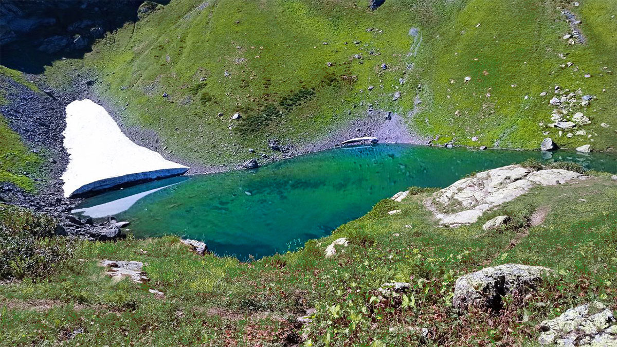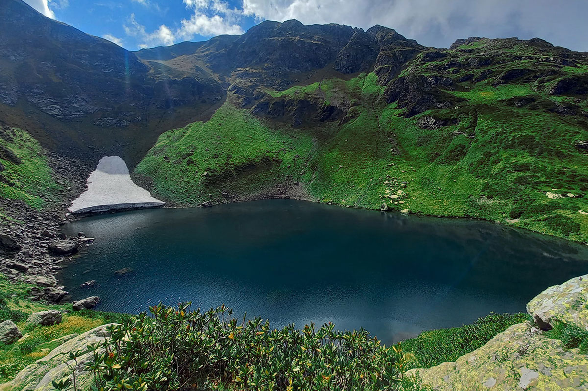 С каждым днём будет узнавать всё больше и больше новых слов из языка Абхазии. Сегодня наш лексикон пополнится словом чха - голова лошади. Именно так переводится название еще одного изумрудного горного озера. Всего полтора часа в пути и мы у цели! Из озера Чха вытекает река, которая даёт начало живописному водопаду. Движемся дальше на гору Чха. Её высота 2600 м, это будет наивысшая точка нашего маршрута по Абхазии. Активная часть треккинга: 6,1 км пешком, перепад высот 1980-2600 м, продолжительность похода 5-6 часов.
