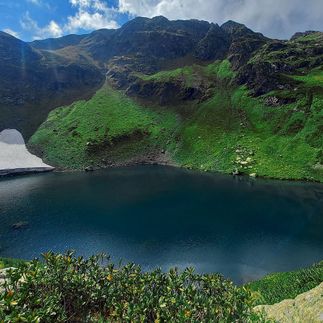 Утром из лагеря едем на перевал Пыв, нас ждёт джиппинг по горам Абхазии. Здесь уже зона альпийских лугов, которые летом порадуют нас своими яркими красками. Воздух здесь необыкновенно чистый, свежий, Горный. Ароматы трав так и витают вокруг! Пройдя часть пути, подойдём к урочищу Каменная поляна - это место ещё романтично называют Долина Семи озёр. Ведь именно здесь, в глубине Рицинского заповедника, находятся удивительные по красоте горные озёра. На Каменной поляне тропа раздваивается - одна тропа заманчиво, плавно уходит в обход горы, а другая - идёт круто вверх. Как в русской сказке, здесь нам придётся выбирать)). В обход пойдёшь озёра не найдешь, круто вверх пойдёшь к Семиозерью придёшь! Так что шустро поднимаемся вверх, навстречу ярким впечатлениям. Местность, по которой сегодня гуляем, носит общее название Агура. Вскоре увидим семь озёр с кристально-прозрачной ледяной водой. По пути треккинга нам встретятся большие и малые водоёмы, озёра с островками, у некоторых озёр даже есть свои имена - Астолдзы, Султан. Активная часть треккинга: 13,2 км пешком, перепад высот 1980-2420 м, продолжительность похода 6-7 часов.