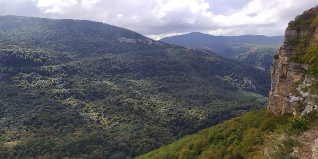На Орлиной полке, словно на гигантских ступеньках, очень приятно сидеть и наслаждаться невероятной панорамой на плато Лаго-Наки, гору Зауду, Утюг, хребет Азиш-Тау и поселок Мезмай.
