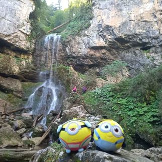 Вдоволь полюбовавшись, идем к следующему водопаду, расположенному на реке Чинарка. Этот каскад весьма необычен - он расположен в своеобразном скальном амфитеатре. Вода падает мощной струей с высоты 12 метров и так и манит искупаться здесь!