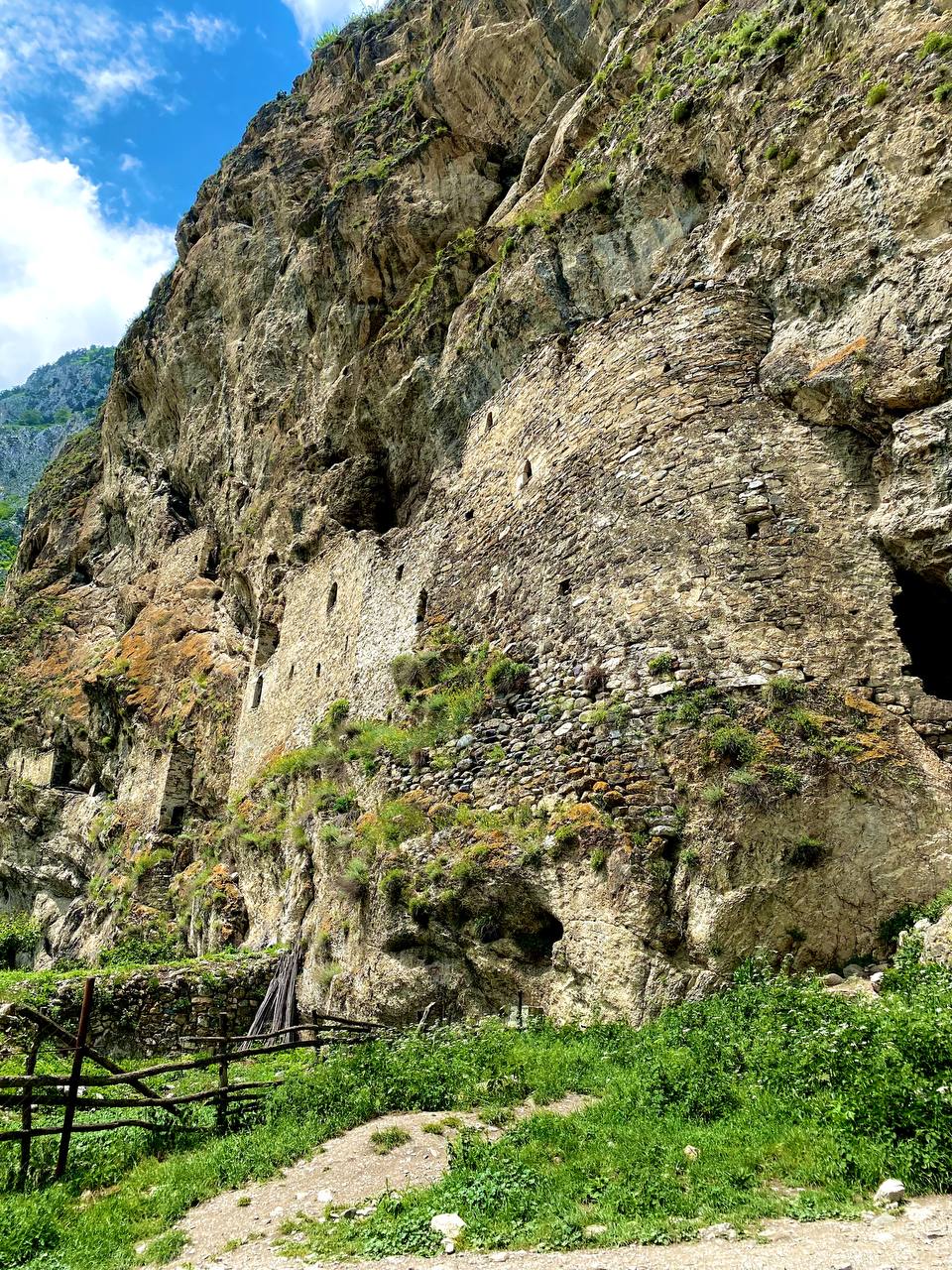 Следую вглубь, самом сердце Алагирского ущелья, среди величественных скал, расположился один из самых необычайных памятников архитектуры современной России - конная статуя Святого Уастырджи. Для осетин это место является святым и одним из самых почитаемых.