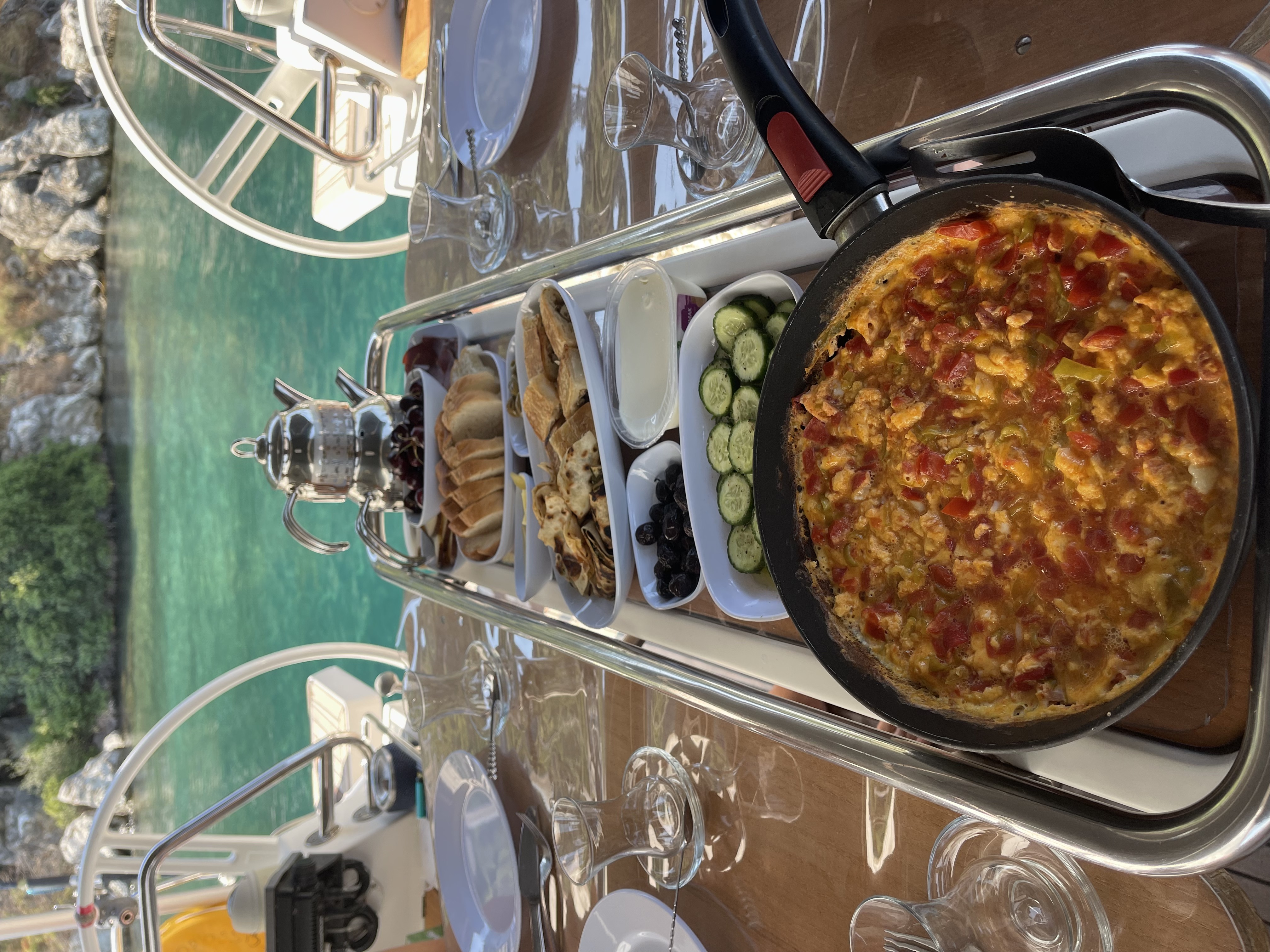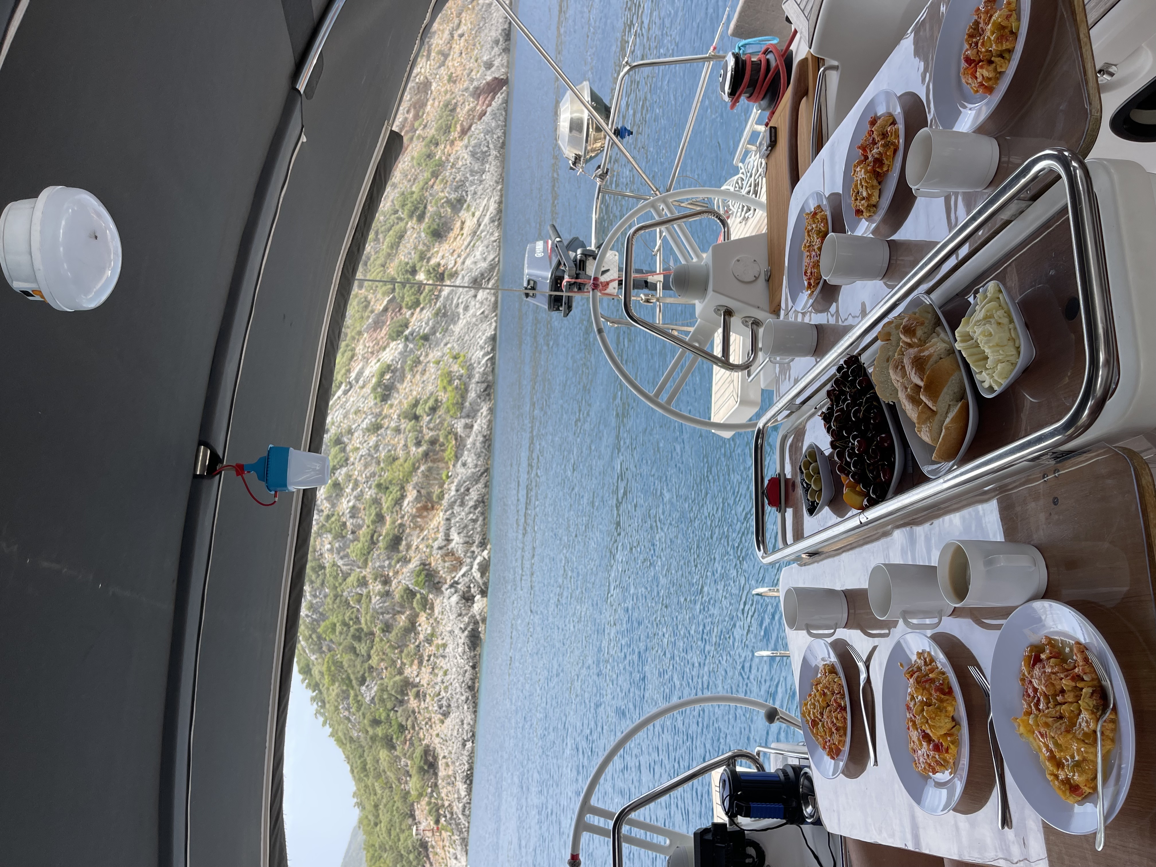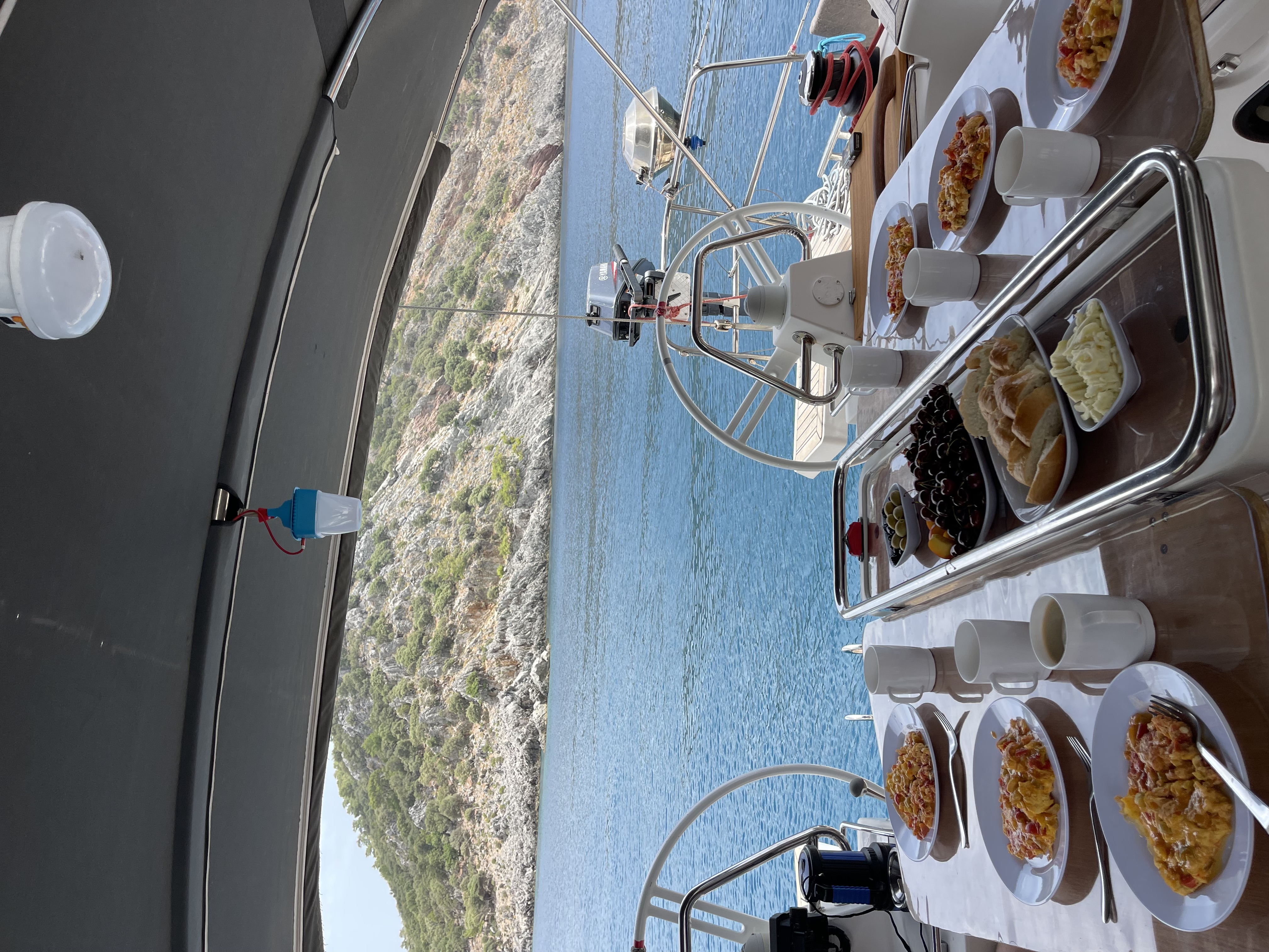Четверг. Утро у острова Гемилер - это традиционные Турецкие Гезлеме! Много лет, каждое утро по якорной стоянке у острова ходит Турецкая лодочка с пожилой парой, которые прямо на лодке пекут свежие турецкие Гезлеме с разной начинкой, Завтрак и купание)