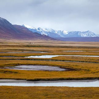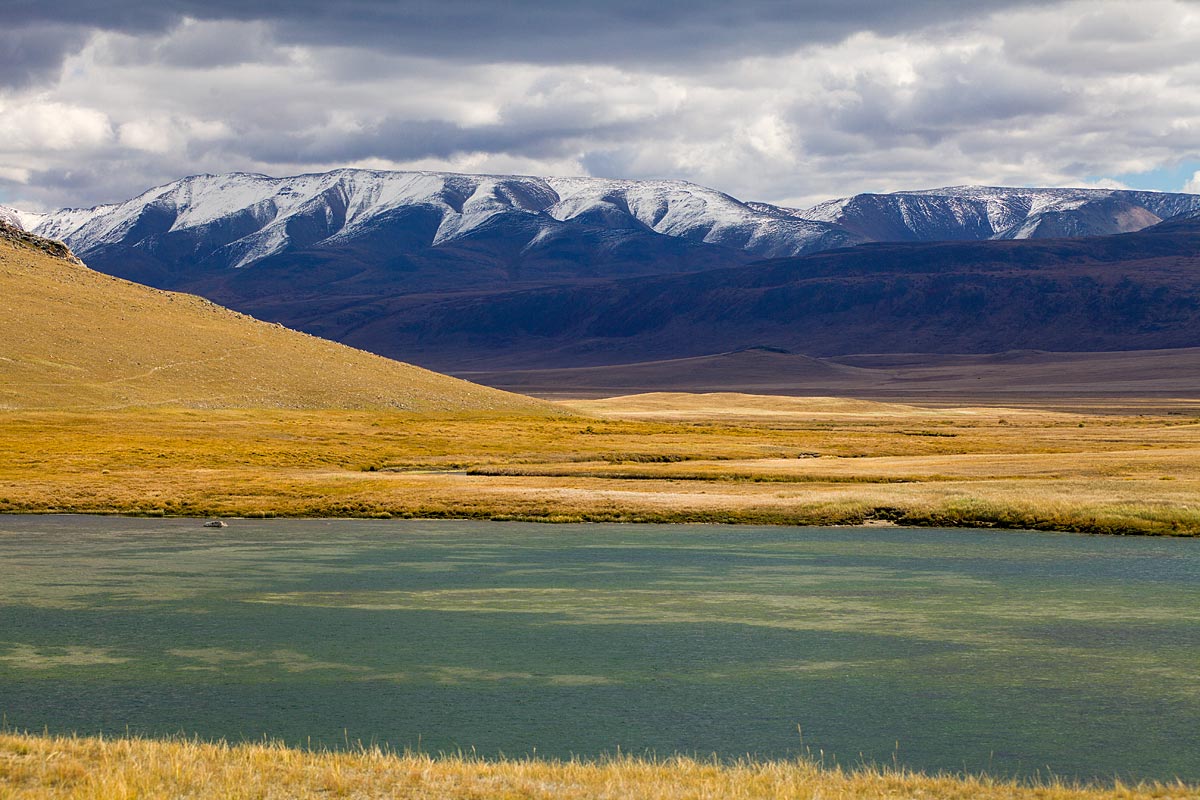 Утром вкусно и сытно завтракаем, собираем лагерь и выезжаем дальше, в глубь плато Укок. По дороге делаем множество остановок для фото. Проходим укокские ванночки - место, где дорогу полностью заполняет вода. Любуемся видами на Табын-Богдо-Ола с разных ракурсов. Делаем остановку на озере Гусином, поохотимся с фоторужьями на... гусей) Здесь их очень много, не зря озеро назвали Гусиным.