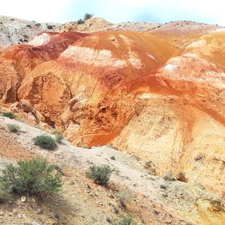 Марсианские пейзажи в урочище Кызыл-Чин выглядят завораживающе. Здесь, как нигде, можно представить себя космонавтом, ступающим по огненной пустыне далекой рыжей планеты. Это ощущение возникает благодаря участками породы рыжих оттенков, создающим неземную атмосферу.