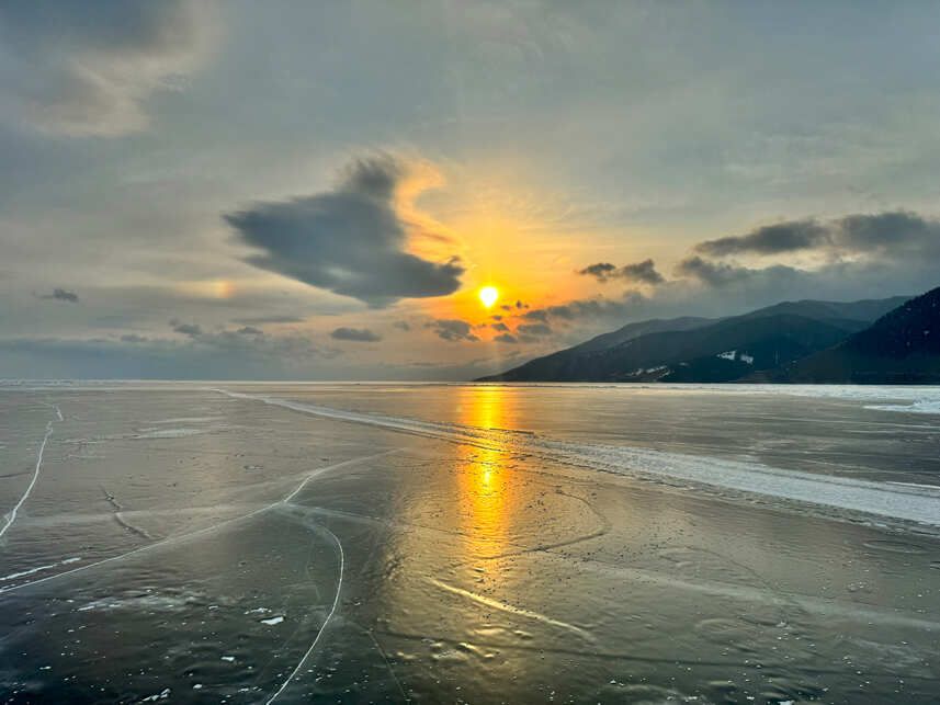 В Хужире нас уже будут ждать комфортные номера. Поужинаем и отправимся на первое знакомство со знаменитым озером — к мысу Бурхан и скале Шаманке, о которой вы наверняка слышали. Посмотрим, как оранжевое солнце уходит за горизонт, окрашивая лёд в невероятные цвета.