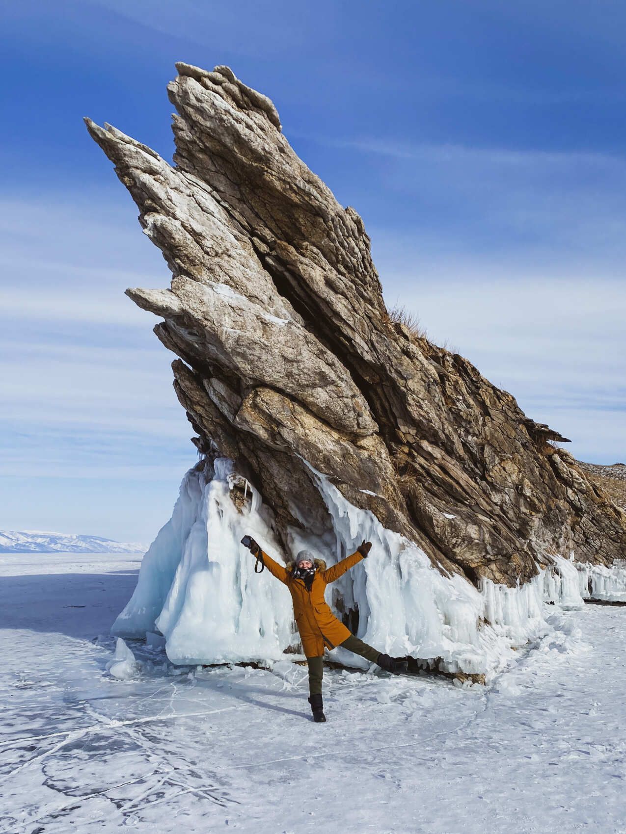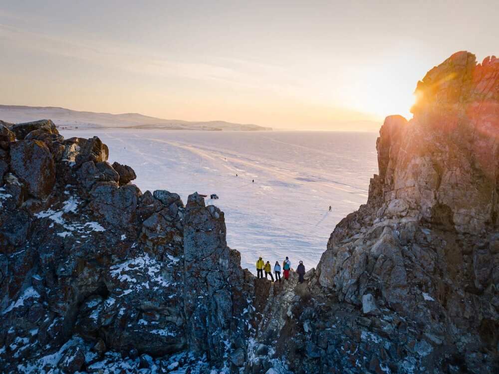 В Хужире нас уже будут ждать комфортные номера. Поужинаем и отправимся на первое знакомство со знаменитым озером — к мысу Бурхан и скале Шаманке, о которой вы наверняка слышали. Посмотрим, как оранжевое солнце уходит за горизонт, окрашивая лёд в невероятные цвета.
