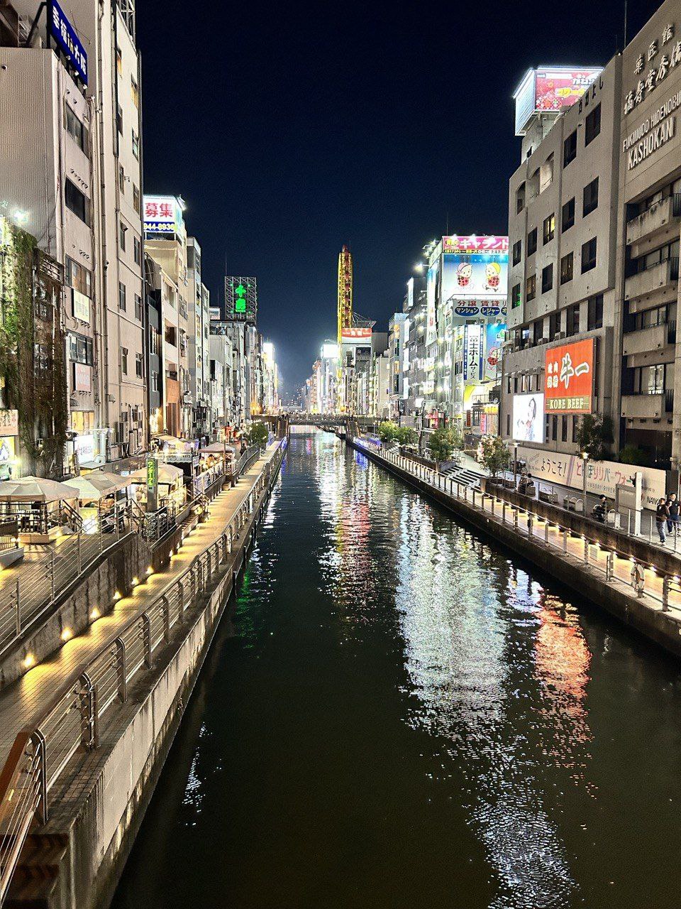 Район Дотонбори: Завершим день в ярком и шумном районе Дотонбори, где можно поужинать, сделать фотографии на фоне неоновых вывесок.