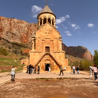 Затем путь ведёт к монастырю Нораванк- удивительному архитектурному комплексу, скрытому среди красных скал каньона. Каменные стены будто сливаются с окружающими горами, а тишина этого места наполняет внутренним спокойствием и восхищением мастерством средневековых зодчих.