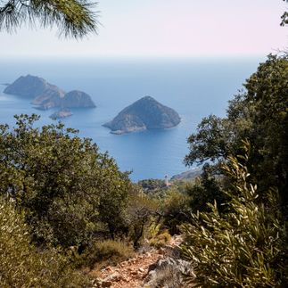 Тропа петляет по склонам прибрежных гор, то ныряя в тенистые сосновые леса, то выбегая на скалистые обрывы. С одной из смотровых площадок открывается панорама на остров Сулуада — его бирюзовые воды туристы прозвали Турецкими Мальдивами. Перепад высот на маршруте составляет около 700 метров, что даёт отличную нагрузку и возможность насладиться сменой пейзажей.