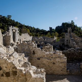 Сегодня мы на море. Рано вставать не нужно, отдыхаем и купаемся. После завтрака отправляемся в Олимпос: древний город, который пираты облюбовали под базу. Сейчас там руины: остатки крепостных стен, бань, библиотеки, пара саркофагов и театр. Всё это довольно плотно заросло кустами и лианами — пробираться интересно, местами реально как в джунглях. Приятный бонус: это не новодел, а подлинник. Стоишь и понимаешь, что вокруг настоящие камни, по которым люди ходили тысячу лет назад. Тогда здесь всё было по-простому: те же театры, торговля, огороды и рыбалка. Просто теперь это всё поросло травой, а мы ходим и смотрим.