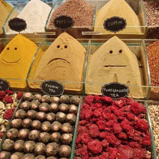 Устоять от завораживающих дух деликатесов на Базаре специй непростая задача. Вы увидите разноцветные мозаичные фонари, вяленые колбасы, помидоры, перцы и баклажаны, свисающие с потолков и фасадов магазинов и выстроившихся в ряды лавки на каждом шагу вплоть до выхода с базара.