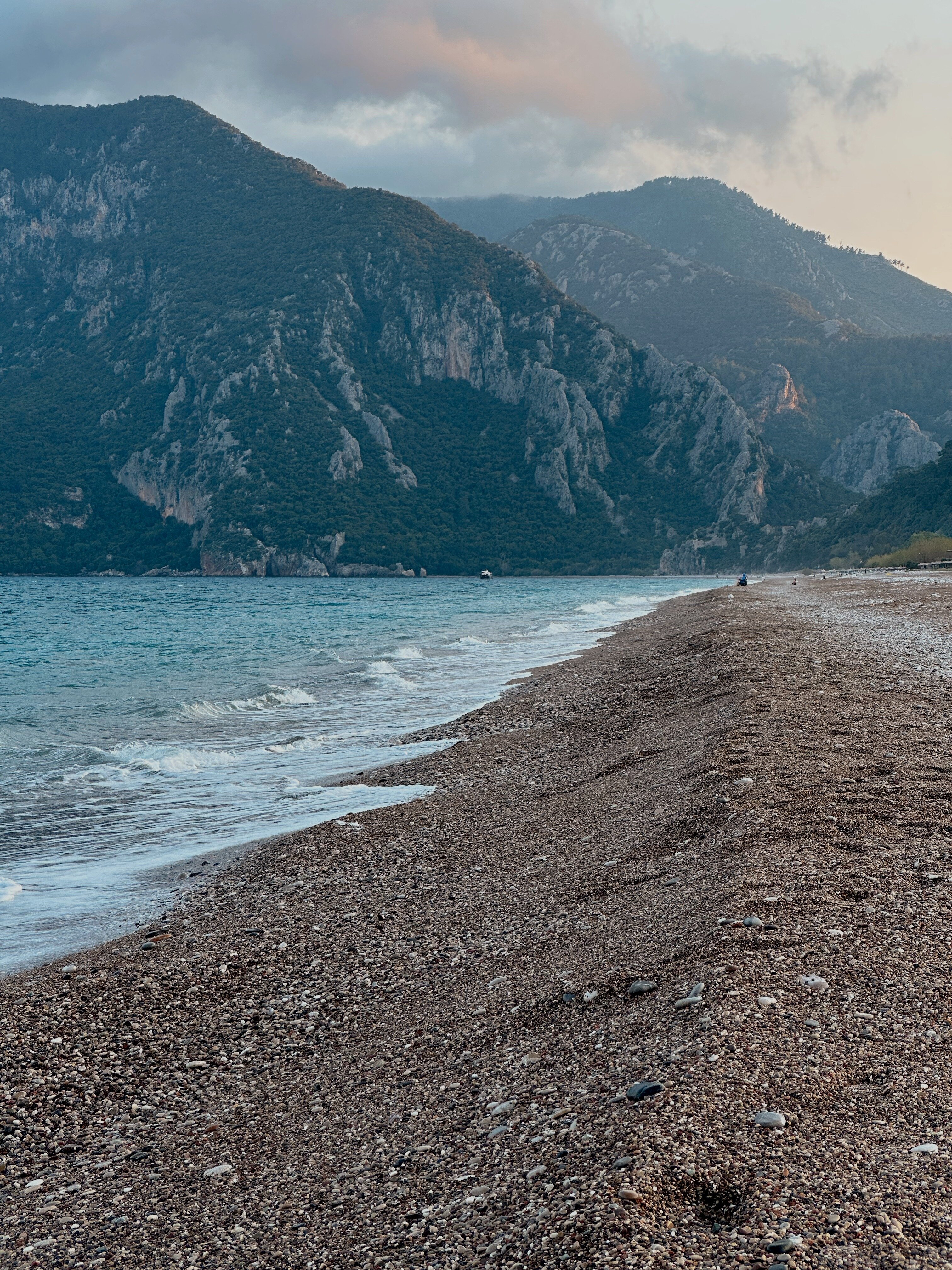 Просыпаемся с красивым видом, вкусно завтракаем, собираем лагерь - и спускаемся к бухте Адрасан. Эта бухта считается одной из красивейших и чистых в районе Анталии - морское дно здесь можно разглядеть даже на глубине 25 метров.