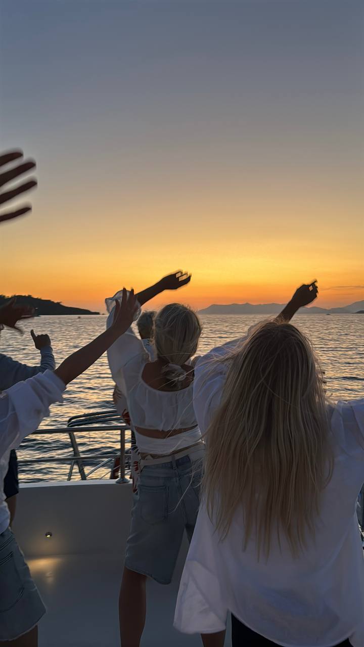 Мы встретим закат на яхте, это прогулка по островам с остановками для купания в диких бухтах, ужином барбекю из свежей рыбки от капитана, музыкой и танцами по настроению.