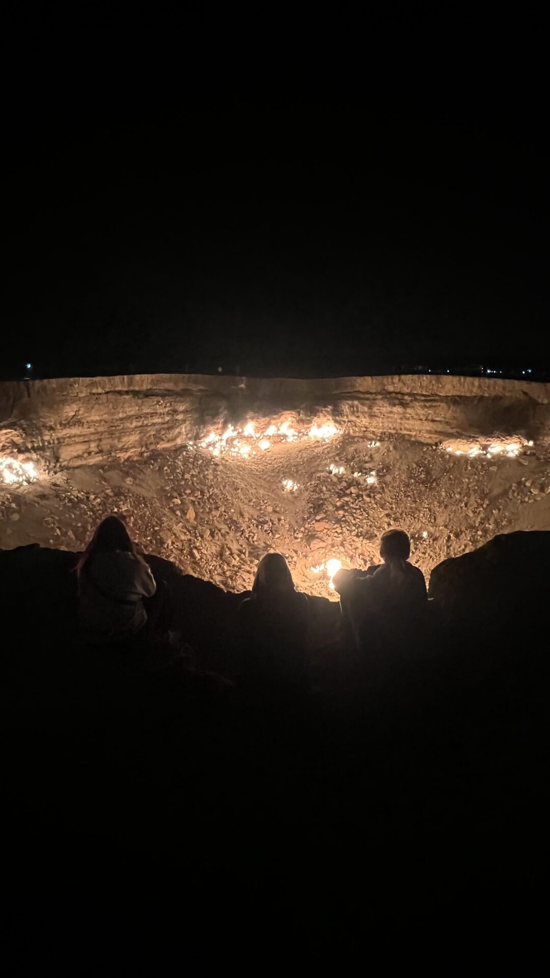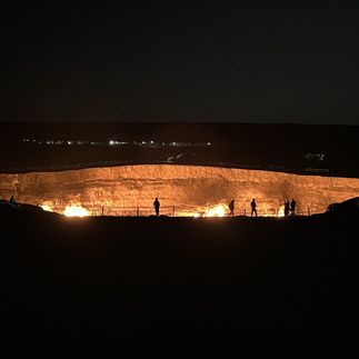 Ну а теперь и вишенка на сладком торте Туркменистана. Да-да, те самые знаменитые на весь мир — Ворота в ад. Этот массивный горящий кратер представляет собой сюрреалистическое зрелище, пламя которого постоянно горит с 1971 года. Завораживающий огонь и окружающий темный ландшафт пустыни создают потустороннюю атмосферу, которую трудно забыть.
