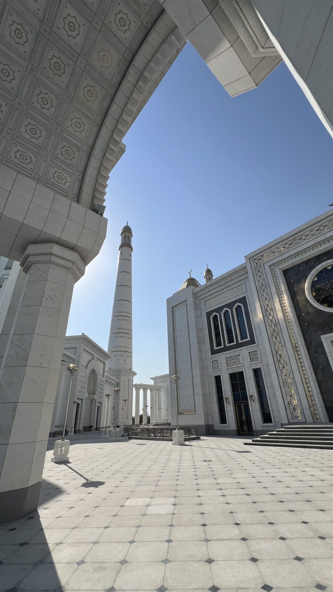 После завтрака нас ждет экскурсия на целый день по беломраморному Ашхабаду. Это уникальный город все здания которого имеют белый цвет, многие из которых еще и облицованы мрамором, а въезд в город разрешен только на автомобилях белого или серебристого цветов.