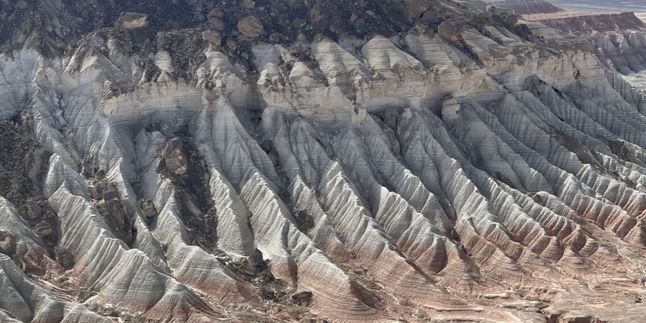 Образования известняка и песчаника создали впечатляющее зрелище, напоминающее сюрреалистический лунный пейзаж. Острые края скал и слои осадочных пород рассказывают историю миллионов лет.