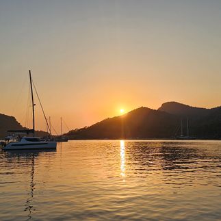 Парусная практика в заливе Фетхие. Прибытие в бухту Сарсала. В бухте — идеально чистая вода и искупаться вечером будет очень приятно. А в ресторане на берегу готовят отличную баранину в тандыре.