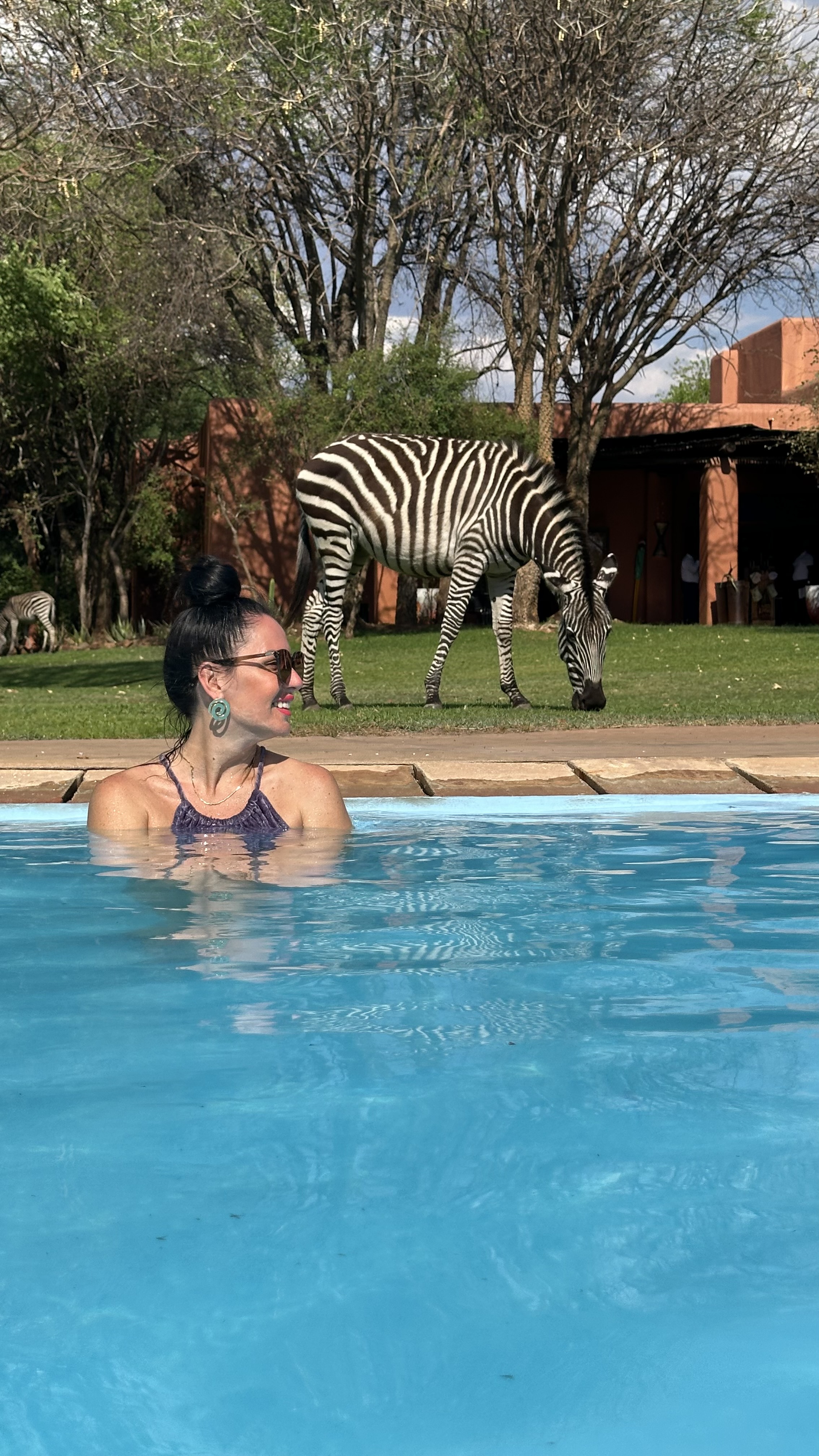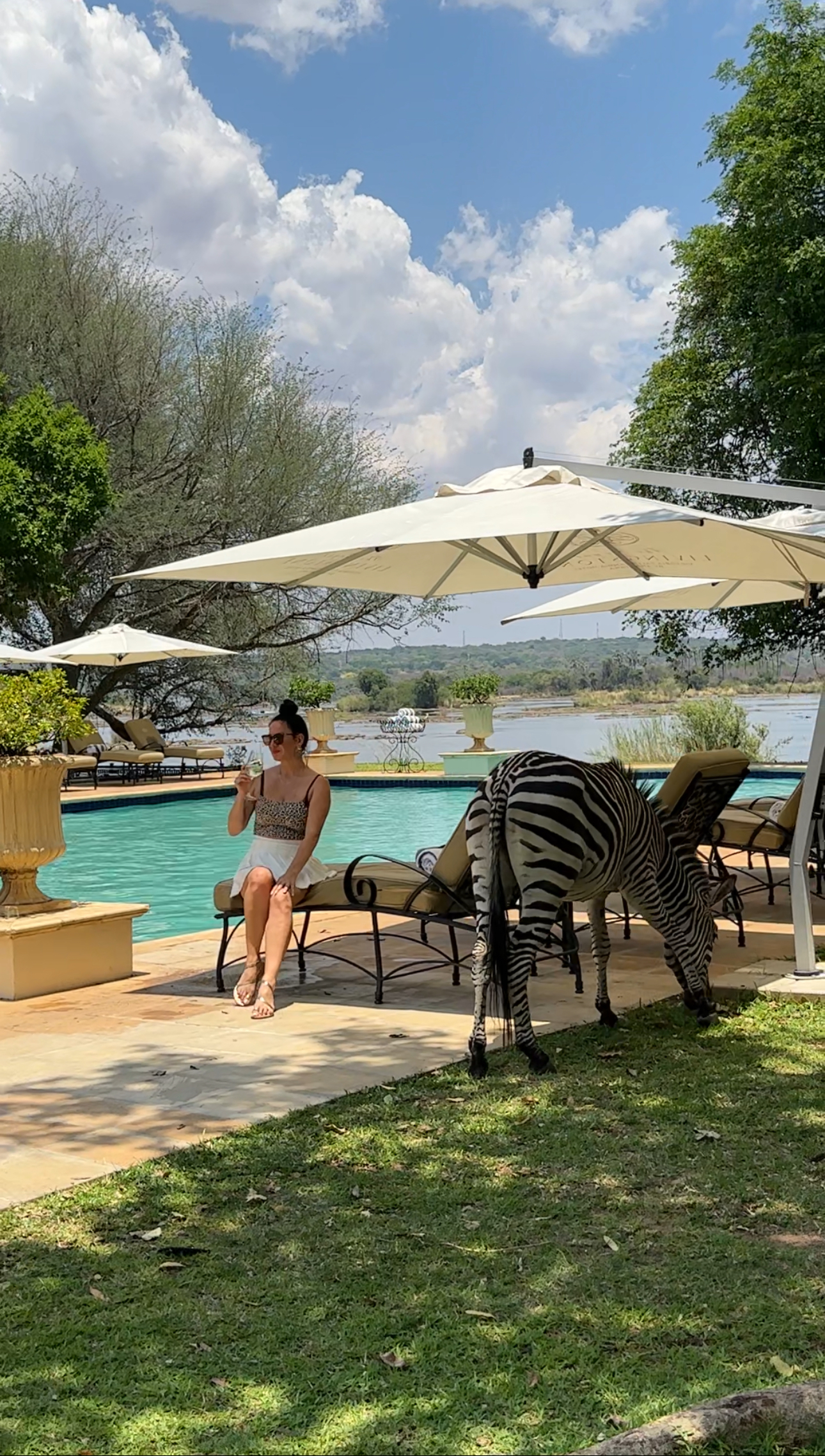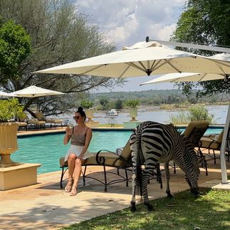 Остаток дня проведем на территории отеля, где возле бассейна гуляют жирафы, зебры и импалы — на расстоянии вытянутой руки от вас.