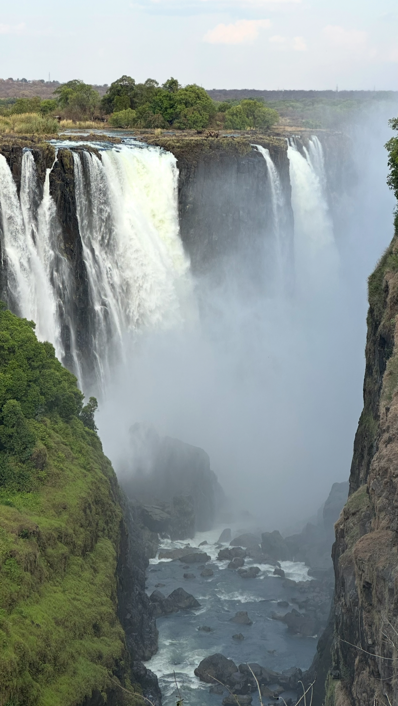 Затем нас ждет прогулка по тропам вдоль водопада с Замбийской стороны — впечатляющая панорама, радуги в брызгах и грохот падающей воды, который ощущается телом.