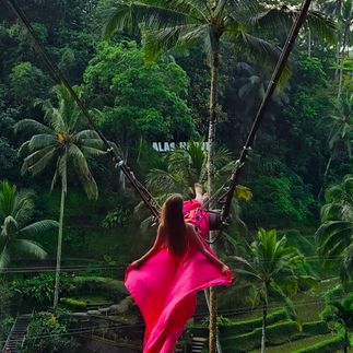 Сначала мы отправимся в парк Alas Harum. Это настоящий инстапарк, где собраны самые эффектные фотолокации. Здесь можно взять в аренду красивое платье, покататься на знаменитых балиских качелях и сделать десятки атмосферных кадров на фоне джунглей и рисовых террас.
