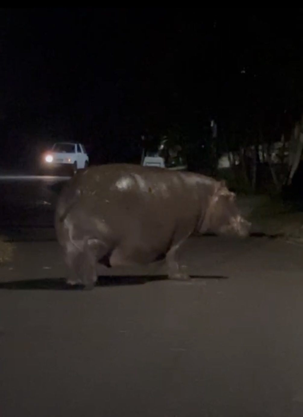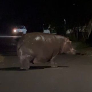Фото охота на бегемотов гуляющих ночью прямо по улицам городка.
