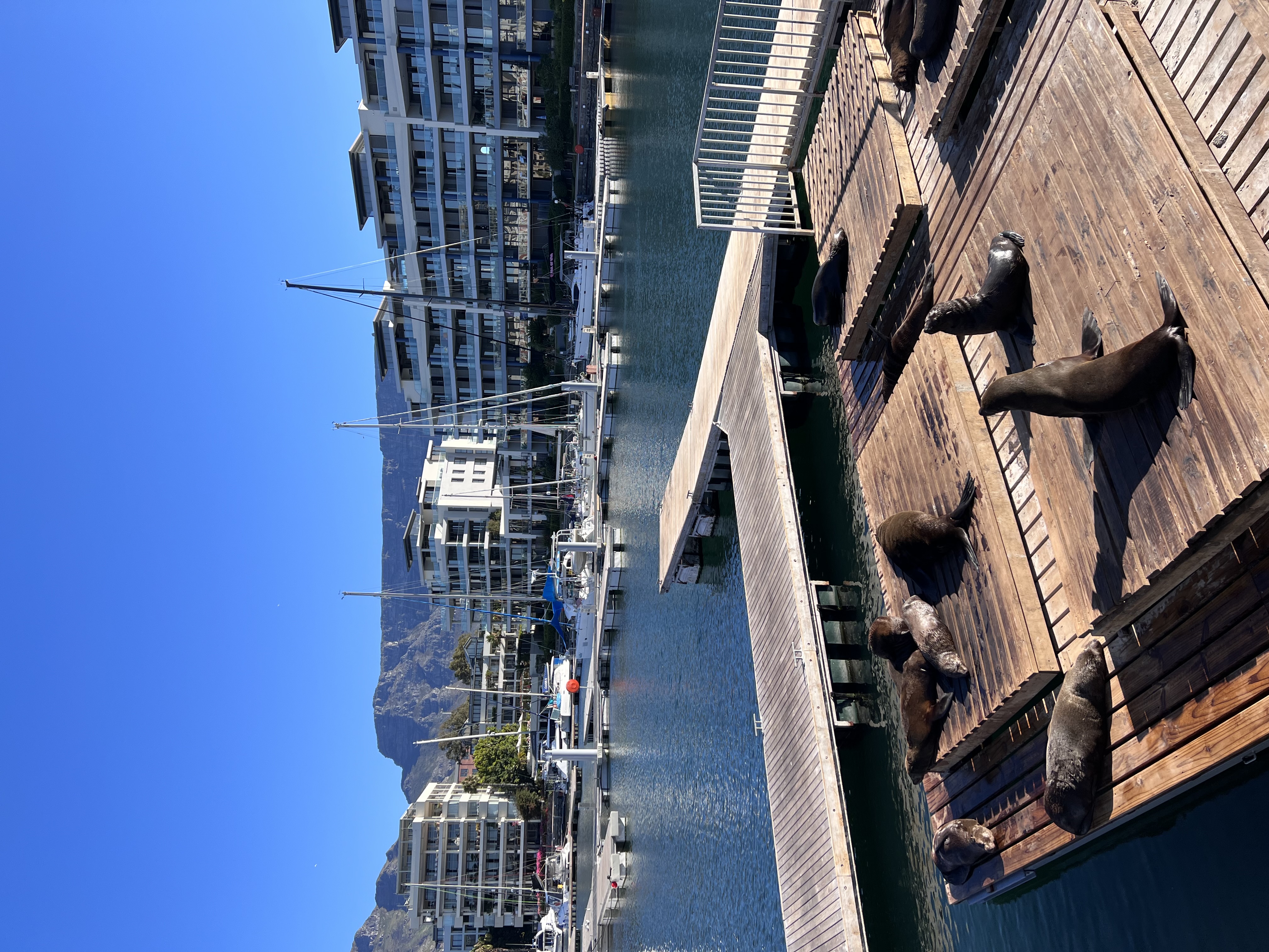 Сегодня мы берём курс на уютную бухту Hout Bay — одно из самых колоритных мест на побережье Кейптауна. Белоснежные пляжи, скалы, обрамляющие берег, прозрачная вода и расслабленная рыбацкая атмосфера. Швартуемся у городского пирса, где прямо на деревянных настилах нас встречают главные обитатели бухты — тюлени.