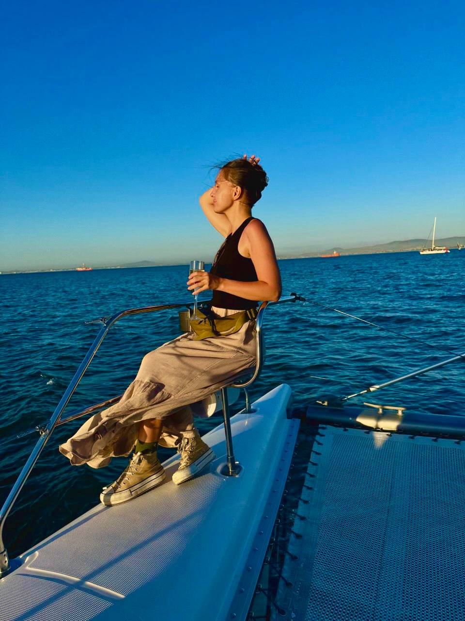 водная прогулка в океане на закате с игристым