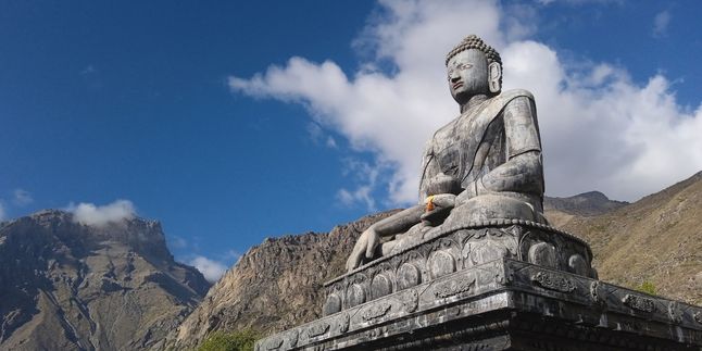 Пройдя по каменистой тропе, побываем у чортенов — маленьких буддистских ступ и возле памятника-мемориала, установленного в честь самого известного тибетского Мастера медитации, духовного учителя Падмасамбхавы. Его золотая статуя с широко раскрытыми глазами обращена на запад, в сторону долины Муктинатх.