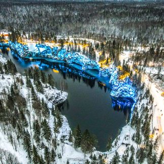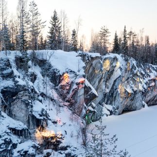 В 17:00 прибудем в парк. Вы полюбуетесь живописными скалами Мраморного каньона в вечерней подсветке — добытый здесь материал был использован для украшения Эрмитажа и Исаакиевского собора. Затем — свободное время. Можно посетить Итальянский карьер и Изумрудное озеро, совершить водную прогулку, зарядиться адреналином, прокатившись на зиплайне, или пройти маршрутом «Подземная Рускеала» и побывать в пещерах и штольнях.