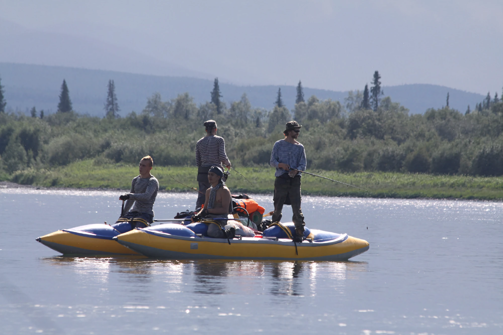 После инструктажа по безопасности разбиваемся на экипажи, учимся синхронной гребле и выходим на воду. Задача дня — освоить роли (рулевой, гребец, штурман) и пройти первые километры. Вечером — баня под звёздами и гитарные баллады у костра.
