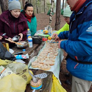 Питание Начиная с перекуса второго дня питание входит в стоимость и у вас нет необходимости покупать что-то дополнительно! Мы очень тщательно занимаемся этим вопросом, у нас только натуральное питание, без быстрых каш и супов. Еду готовят участники похода под чутким руководством одного из инструкторов. На каждый день назначаются несколько дежурных, ответственных за приготовление пищи.