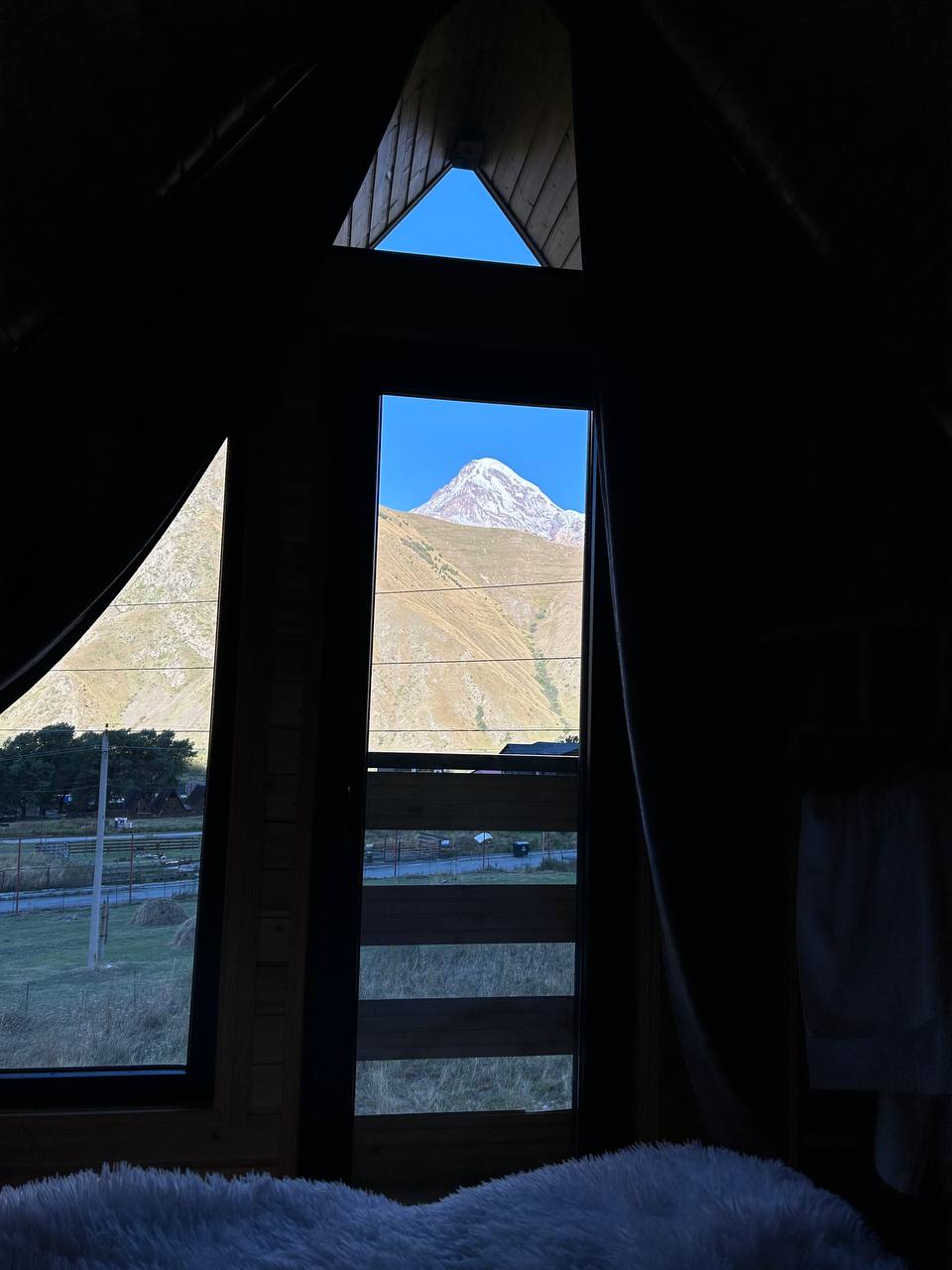 Утро в горах с чашечкой кофе и шикарным видом на Казбек - что может быть лучше? Завтракаем, немного гуляем по горной деревушке. Если в предыдущий вечер видимость была плохая, поднимаемся на смотровую площадку к Гергецкой троице.