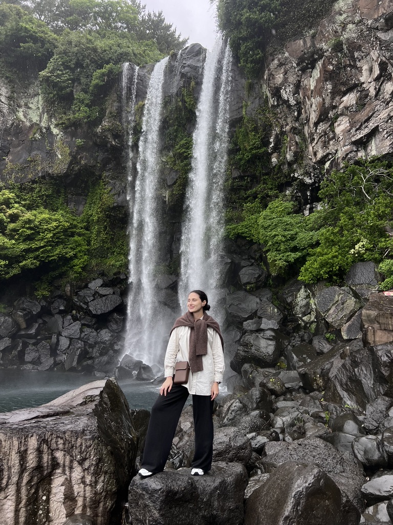 Затем нас ждет водопад Чонбан с чистейшей артезианской водой. Это единственный в Азии водопад, который впадает прямо в море.