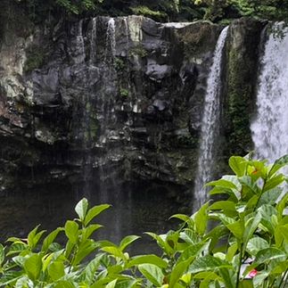 Посетим еще один водопад, название которого переводится как пруд Небесного императора и посмотрим на скалы, которым лава придала причудливые формы многогранников.