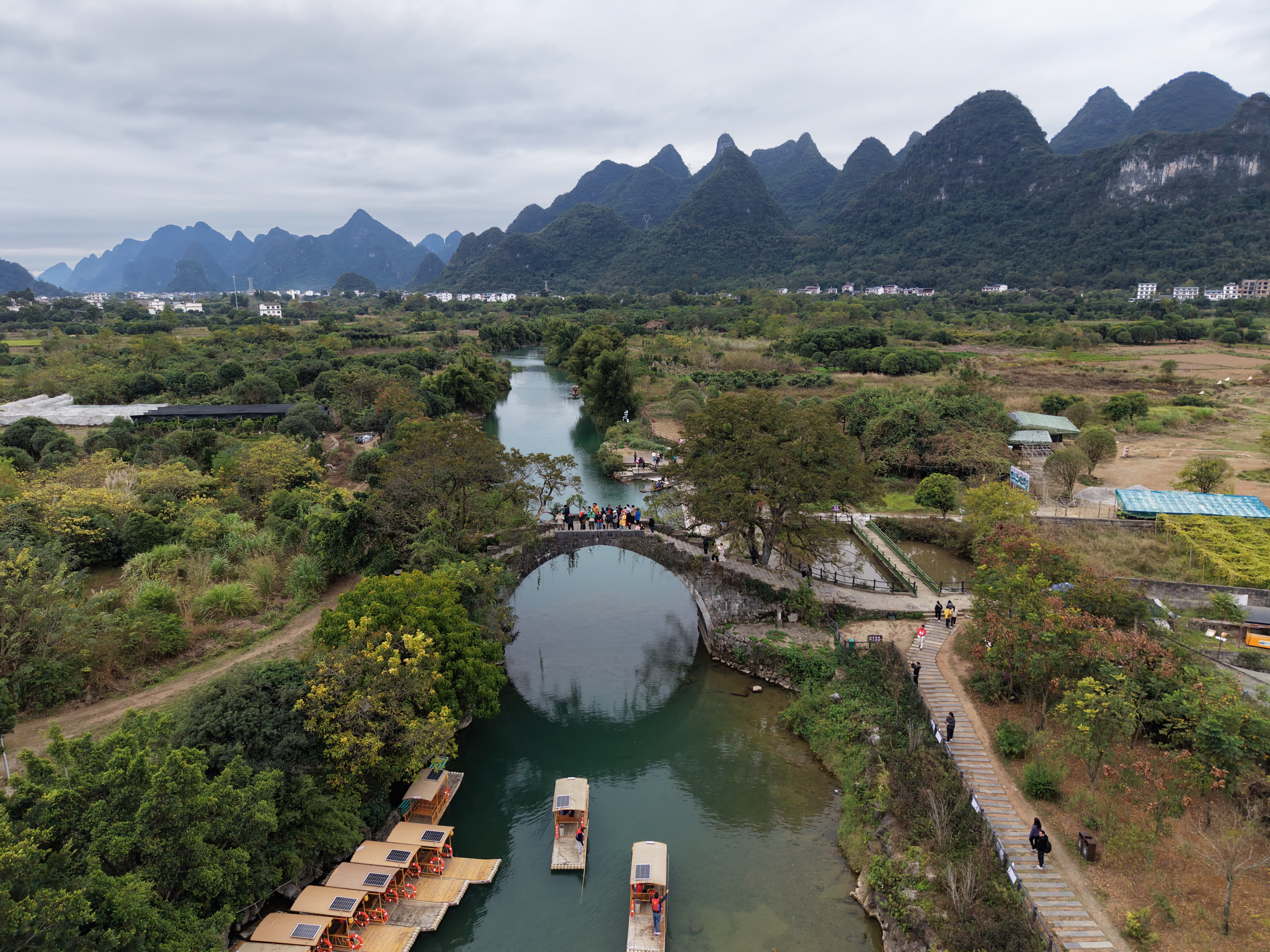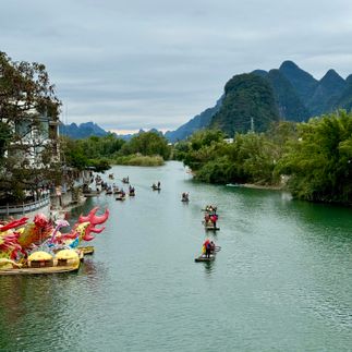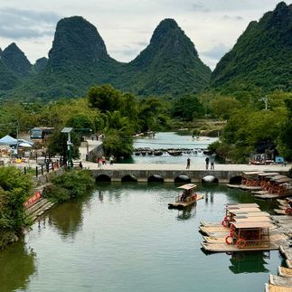 Здесь нас ждут покатушки на электромопедах сквозь тысячи карстовых холмов, посещение старинных деревень, сплавы на бамбуковых плотах, высотный парк на вершинах холмов и каменные мосты.