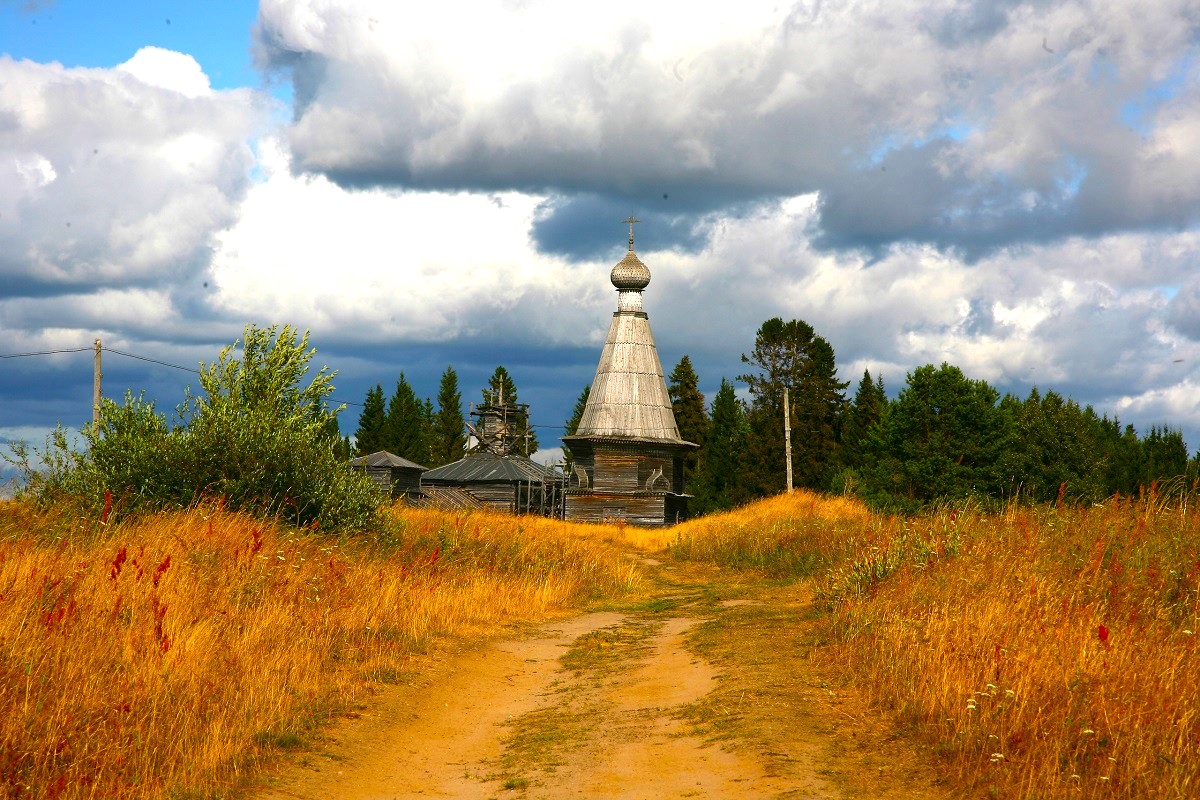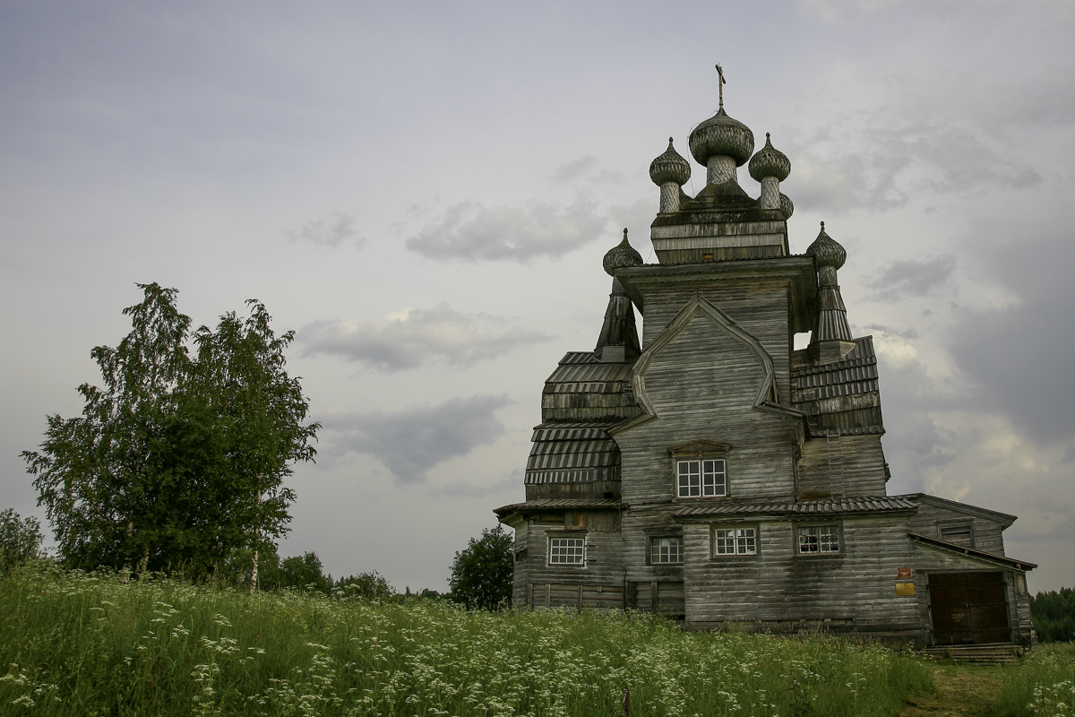 Всего в 25 км от Онеги расположен один из красивейших храмов Русского Севера. С дороги открывается прекрасный на одинокую церковь Владимирской иконы Божьей матери (1757). Мы переправимся через Онегу, которая в этом месте распадается на несколько протоков, осмотрим храм с разных ракурсов и обязательно зайдем внутрь. В храме сохранился расписной потолок-небо и остатки росписей алтарной части. В заключение экскурсии пройдемся по селу, принадлежащему деревянной цивилизации Русского Севера