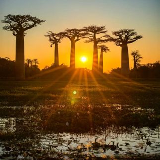 После завтрака в отеле в Мурундаве мы отправляемся в сторону легендарной Аллеи баобабов, чтобы провести утренний фотосет среди этих величественных деревьев в первых лучах солнца. Далее наш путь лежит в резервацию Киринди (около 3 часов в пути), по дороге мы сделаем остановку у сакральных древних баобабов. По прибытии в Киринди нас ждёт насыщенная экскурсия по сухому тропическому лесу, где обитают различные виды лемуров, хамелеонов и ящериц. При удаче мы сможем увидеть и уникального хищника Мадагаскара — фоссу, которые часто приходят к ресторану рядом с парком. После экскурсии мы заедем в уютный лодж неподалёку: здесь можно отдохнуть, пообедать и освежиться в бассейне. Далее мы снова отправимся к Аллее баобабов — в этот раз ради самого зрелищного момента: заката среди баобабов. Здесь же мы посетим священный гигантский баобаб, к которому можно подойти только босиком, обойти его семь раз и загадать желание. Также увидим влюблённые баобабы — два переплетённых дерева, ставшие символом вечной любви. Согласно местным легендам, они приносят удачу влюблённым и семьям. После закатного фотосета возвращение в отель в Мурундаве, ужин и ночь в отеле.