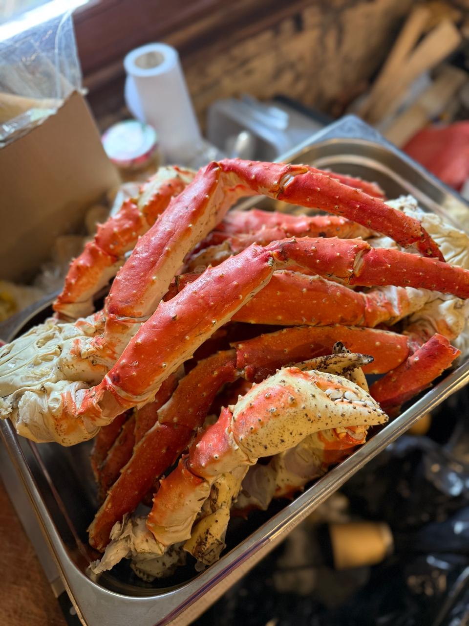 В ужин включено: Камчатский краб, морские ежи, морской гребешок, 5 видов вяленной и копченой рыбы, печень трески, отварной картофель, ароматная уха, свежеиспеченный хлеб, чай из самовара с морошковым вареньем. Стоимость: 6 500 руб.