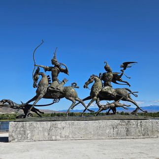 Встреча в аэропорту Кызыла в 9:00. Экскурсия по центру. Памятный знак Центр Азии знаменитого скульптора Даши Намдакова стела на берегу Енисея, символ географического центра Азии. Здесь же установлены скульптурные группы: бронзовая Царская охота и мраморная Мой дом. Справа от них две реки: Каа-Хем и Бий-Хем сливаются, образуя великую сибирскую реку - Енисей.