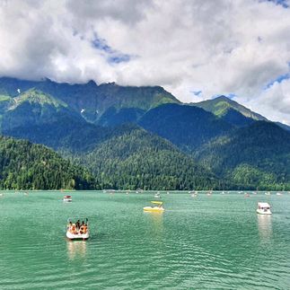 Пообедаем в кафе на берегу Рицы свежевыловленной форелью, шашлыком или ухой.. Погуляем вдоль Рицы, запечатлив невероятной красоты виды. И, по желанию, прокатимся по водной глади на катамаране (оплачивается дополнительно). Мы очень советуем это сделать! Все остаются в восторге!