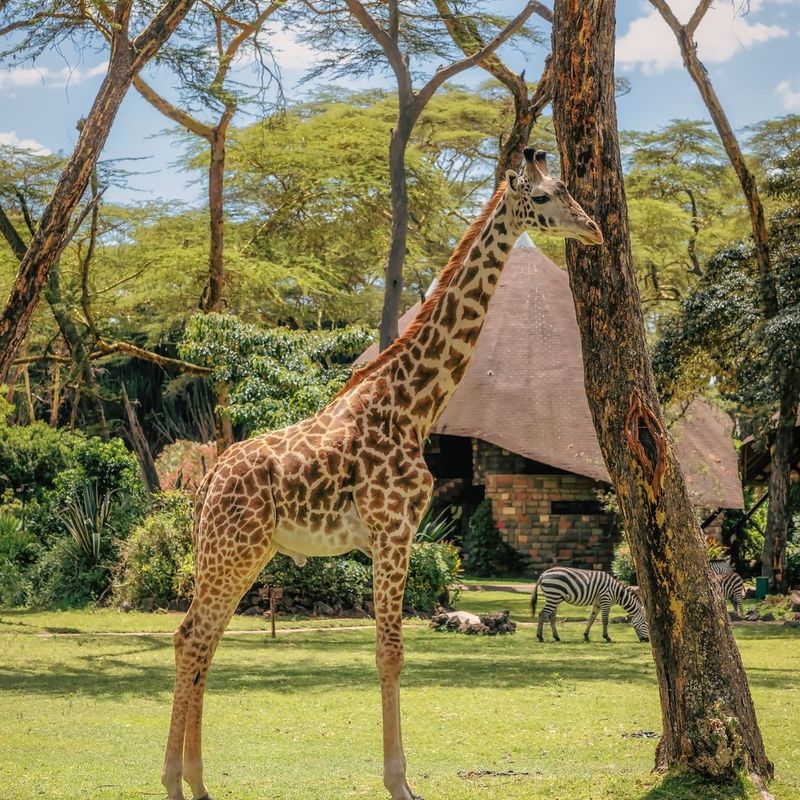- Размещаемся в отеле, где по территории днем свободно гуляют жирафы и зебры, а ночью приходят гиппопотамы