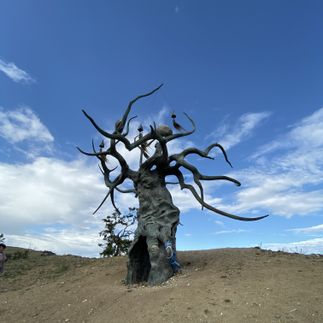 После обеда заедем еще в одно примечательное место, здесь в 2018 году была установлена скульптура Отец Байкала или Хранитель Байкала.