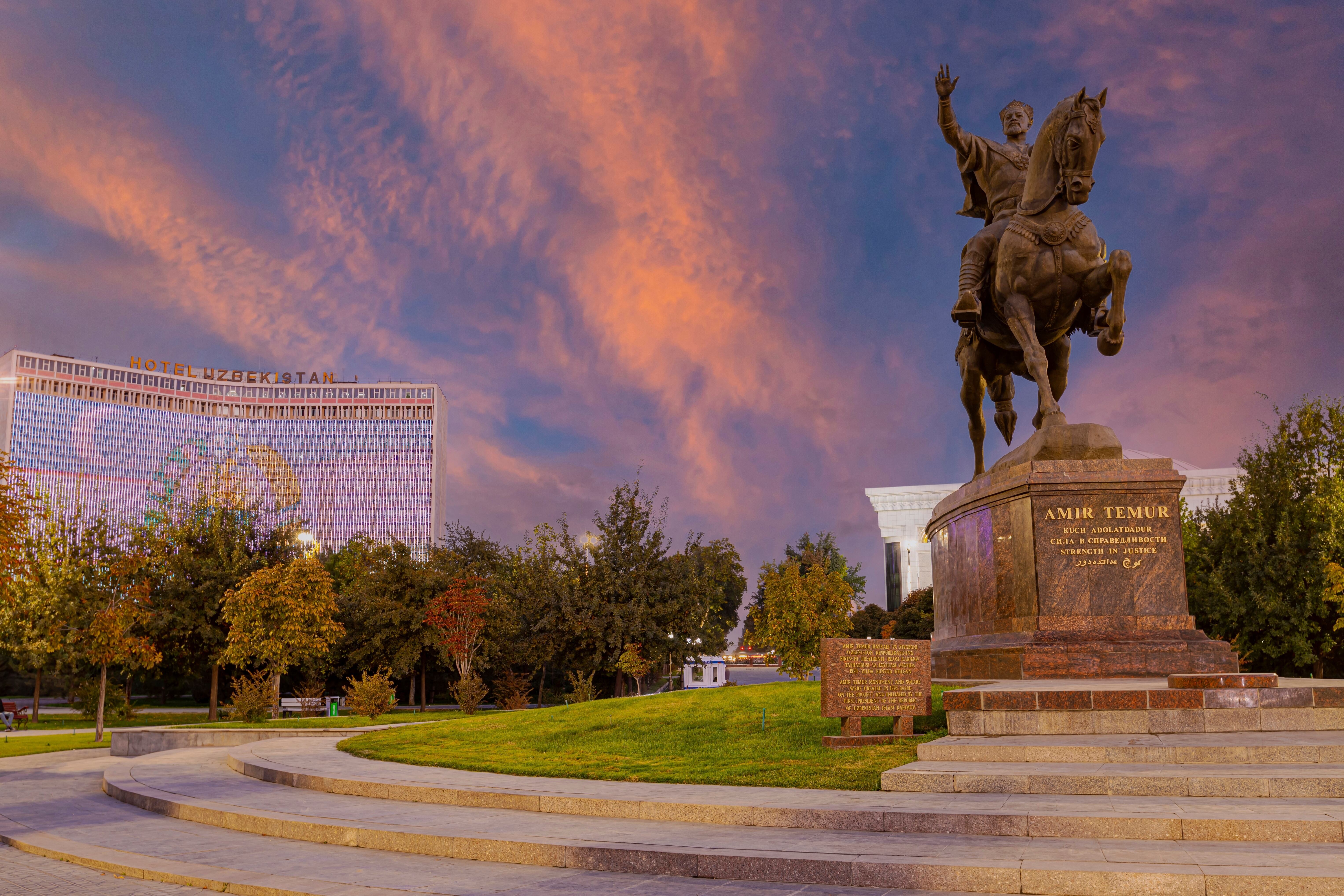 Далее нас ждёт Сквер Амира Темура — сердце современного Ташкента, окружённое архитектурными памятниками и тенистыми аллеями.