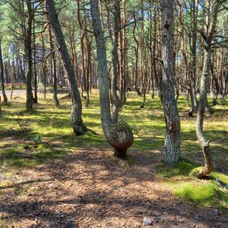 Посетим Танцующий лес, это небольшой участок леса, где деревья встречаются причудливой формы: в форме кольца или лиры, завязанные в узел или в форме спирали. Попробуем разгадать загадку - почему деревья танцуют?