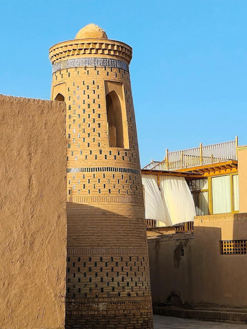 Рядом возвышается медресе Саид Ислам-ходжи с самым высоким в Хиве минаретом.