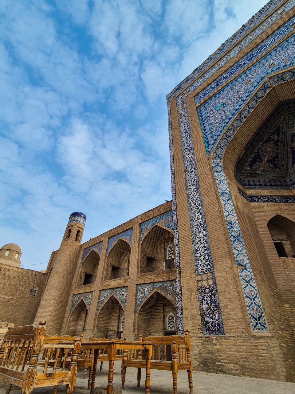 Здесь же вы увидите медресе Саид Нияз Шаликар Бая, построенное на средства богатого ремесленника, - символ вклада простых горожан в архитектурный облик Хивы.