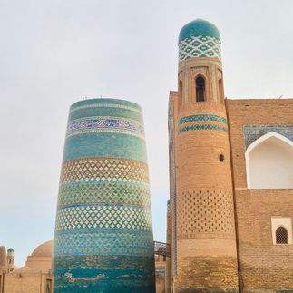 Далее нас ждёт символ Хивы - недостроенный минарет Кальта-Минор и прилегающее к нему медресе Мухаммад Амин-хана. Вы узнаете легенду о том, почему этот гигантский минарет так и не был завершён.