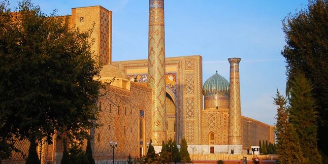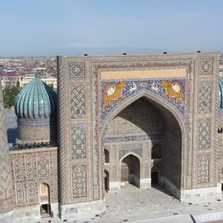 В 8:00 утра отправляемся в Самарканд. В 10:00 прибудем в город, оставим вещи в гостинице и пойдём на площадь Регистан. Здесь расположено медресе Улугбека — культовое сооружение 15 века, классический образец высшего учебного заведения на Востоке. Полюбуемся причудливыми узорами в арабском стиле из голубой майоликовой плитки на стенах здания и отправимся дальше.
