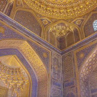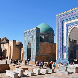 Отправимся в комплекс мавзолеев Шахи-Зинда, построенных в 14-15 веках. 11 усыпальниц с сине-голубой мозаикой на фасадах образуют единую сверкающую композицию вдоль узкой улочки. Здесь хоронили знатных особ, включая Амира Тимура и его потомков. Главная могила, к которой стекаются паломники, — захоронение Кусама ибн-Аббаса, брата пророка Мухаммеда. Его прозвище Шахи Зинда дало название всему комплексу. Пообедаем в «Центре плова» и сравним самаркандскую версию блюда с ташкентской.