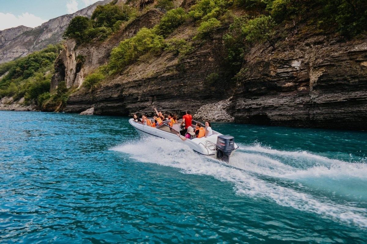 После плотного обеда, выезжаем на смотровую площадку Сулакского каньона. Это самый большой каньон в России и один из глубочайших в мире. Его протяжённость - 53 километра, глубина достигает по (новым данным) 2030 метров. Это на 180 метров глубже знаменитого Гранд-каньона в Сша. Можно будет запечатлеть панорамы живописного Сулакского каньона с обзорной площадки на вершине ущелья. Но это еще не всё! Ведь нас ждёт удивительная прогулка на катерах (с ветерком и музыкой), по Чиркейскому водохранилищу. Скажу от себя, что там необычайные виды, от которых захватывает дух!